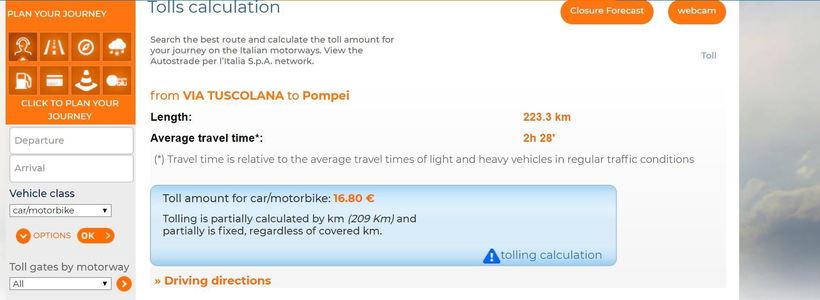 Добраться до Помпей на машине не составит никаких проблем. Дорога займет примерно часа 2,5. Дороги на всём протяжении маршрута довольно неплохи, что позволяет двигаться с высокой скоростью. Будет по пути и неприятность в виде платных дорог. Оплатить их можно 3 способами: