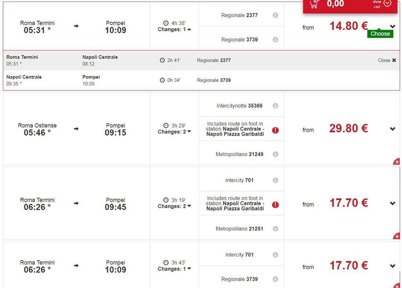 Можно добраться и на поезде, более того, могу сказать, что большая часть туристов именно так в Помпеи и попадает. Но ниже я постараюсь отговорить всех от этого варианта и объясню, чем же он так плох. Итак, для начала скажу, что придется воспользоваться поездами компании Trenitalia. Вот скриншот с её сайта: