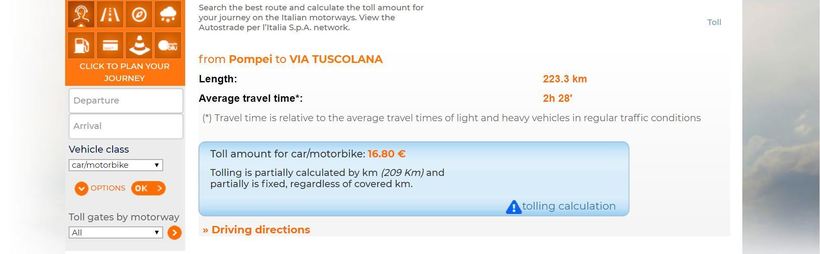Дорога займет примерно часа 2,5, быстрее вряд ли получится, минимум 2 часа придется выделить в любом случае. Главный момент, о котором следует помнить, это наличие платной дороги практически по всей длине маршрута. Рассчитать стоимость поездки поможет вот этот сайт. Я же оставлю скриншот с ценой проезда по данному маршруту: