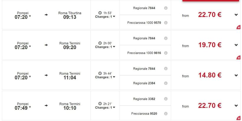 С первой станции, которая называется просто Pompei, можно уехать поездами Trenitalia. Вот скриншот с сайта перевозчика:
