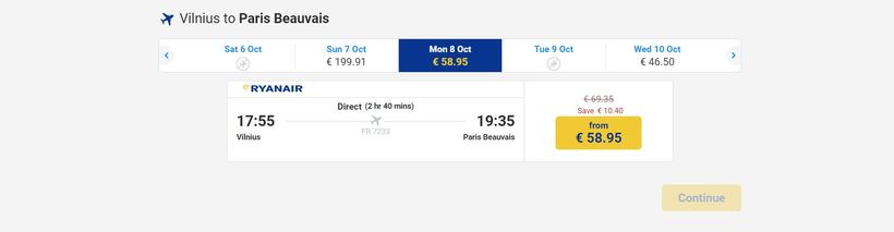 Авиарейсы осуществляют 2 компании. Ryanair летает в аэропорт Бове, а Air Baltic – в аэропорт Шарль де Голль. Сначала приведу скриншот с сайта Ryanair: