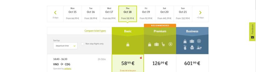 Цена билета на рейс Ryanair стартует от 46,5 евро, на рейс Airbaltic от 59 евро.