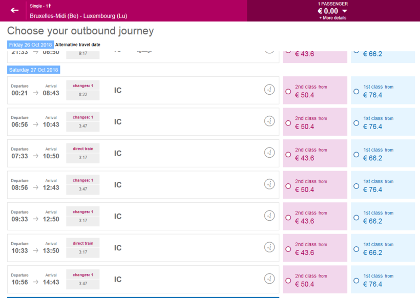Из Брюсселя в Люксембург ходят ежедневно только два прямых поезда. Поезда Интерсити комфортабельные, есть вагоны как первого, так и второго класса, но времени этот рейс займет немного, поэтому я советую вам просто купить самый дешевый билет.