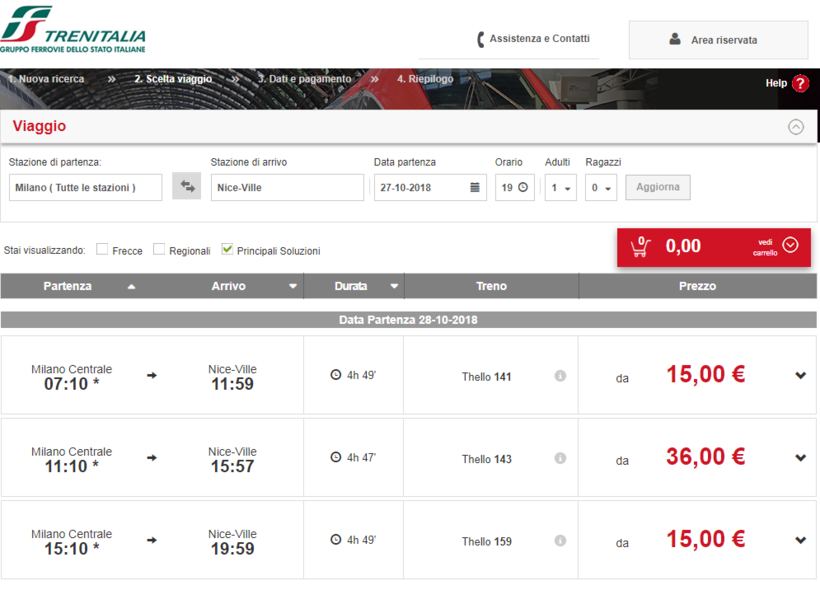 Из Милана в Ниццу ходят поезда только одного итальянского ж/д оператора TrenItalia, вам нужен поезд Thello. Есть вагоны 1 и 2 класса, оборудованные кондиционером. Поезд в пути всего 4 часа 50 минут, советую не переплачивать, а просто взять самый дешевый билет, как поступила я, европейские поезда все чистые и новые, ехать будете с комфортом, а виды за окном точно не дадут вам заскучать.