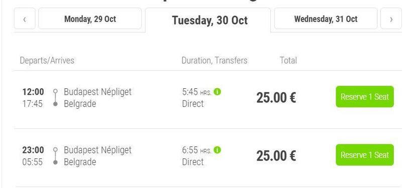 Ниже приведена информация о том, сколько часов вам потребуется, чтобы добраться от Будапешта до Белграда, а также приведена примерная стоимость проезда (средняя цена билета) на том или ином виде транспорта.