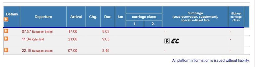 Прямые поезд из Будапешта в Белград также существуют. Для того, чтобы ознакомиться с их расписанием, рекомендую посетить сайт венгерских железных дорог. Приведу здесь скриншот с сайта: