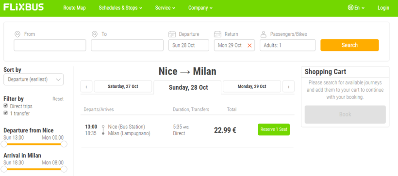 А автобусы Фликсбас отправляются с Gare Routière Nice Côte d'Azur, из центра до него можно доехать на 37 автобусе за 20 минут.