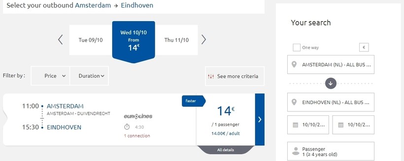 А вот поездка с Eurolines обойдется немного дороже — от 14 евро.