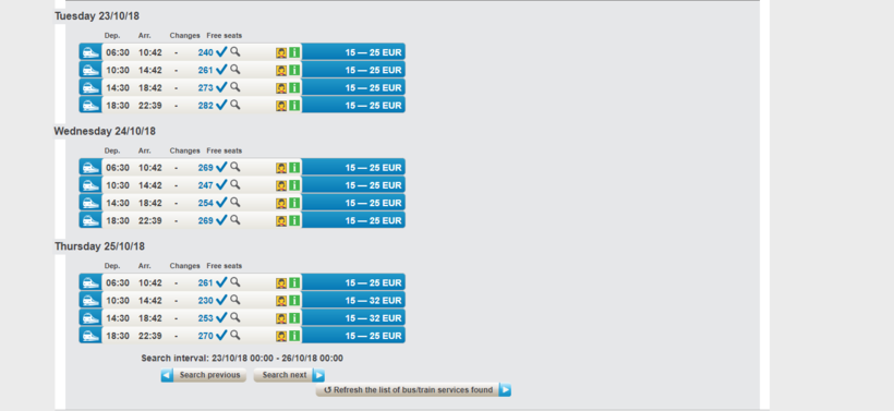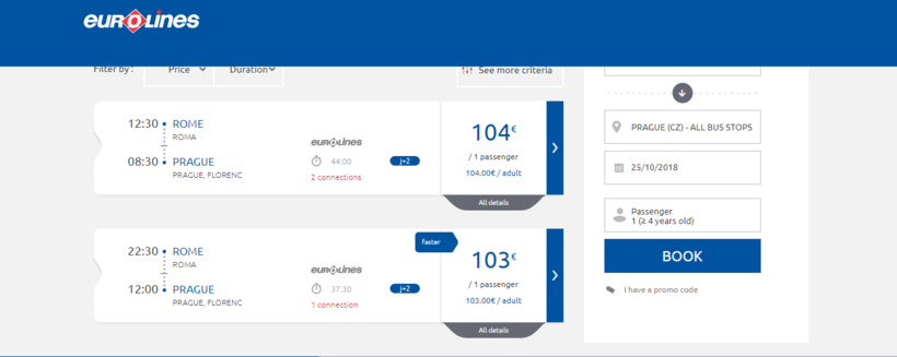 Student Agency билет стоит – 44€. А вот Eurolines обойдется в раза 2 дороже – 103€..