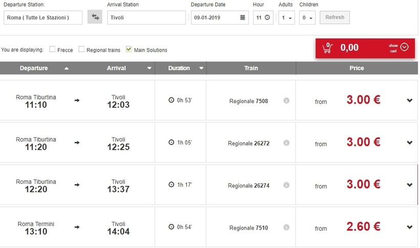 Ездят поезда с интервалом от десяти минут до часа. Расписание можно посмотреть на сайте компании Trenitalia. Ехать на поезде в Тиволи один час. Но, как мне кажется, этот вариант имеет большой плюс — вы не попадете в пробки. Поэтому летом это идеальный способ проезда.