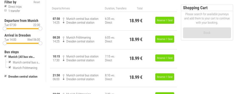Прямые автобусные рейсы предлагает только компания Flixbus. Автобусы её легко отличить благодаря оригинальной раскраске.