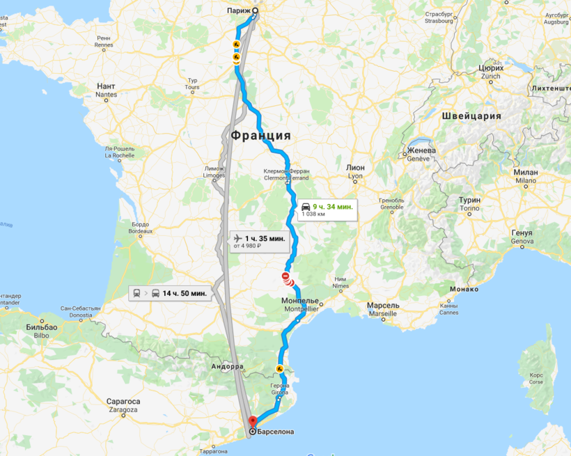 Еще один комфортный, но дорогостоящий способ путешествия из Парижа в Барселону это автомобиль. Расстояние между городами около 1000 км, это примерно десять - одиннадцать часов в пути. Дороги по-европейски качественные, поездка не доставит вам дискомфорта.