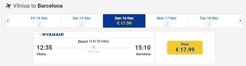Из Вильнюса в Барселону летает две бюджетные авиакомпании. Полеты осуществляются не каждый день, поэтому график обязательно надо уточнять. С литовской столицы в Барселону летает Ryanair.
