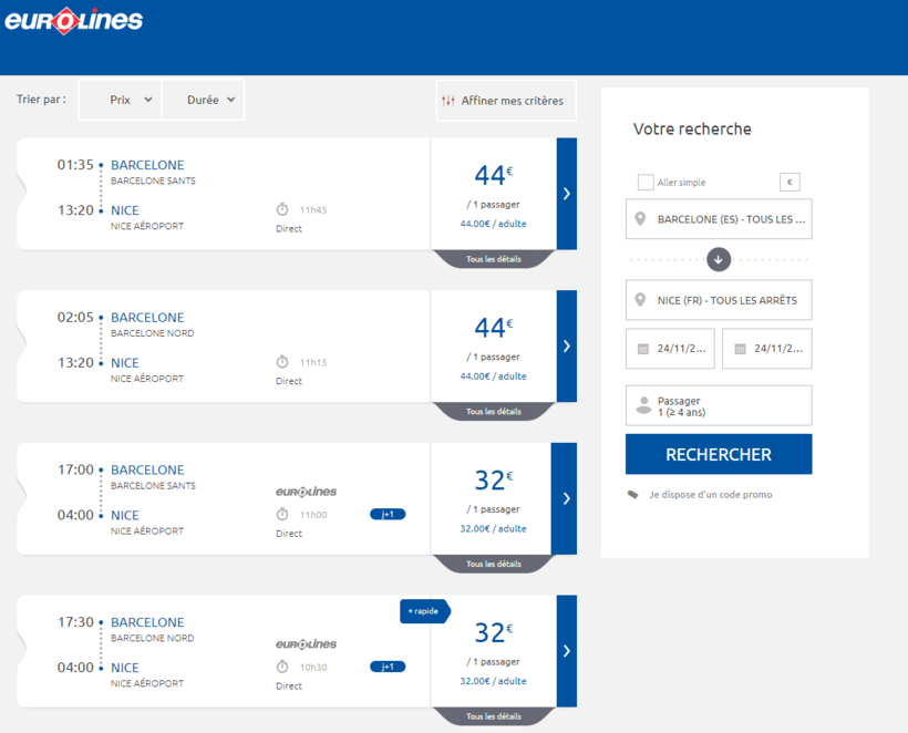 Данный маршрут осуществляет только один автобусный перевозчик – Eurolines.