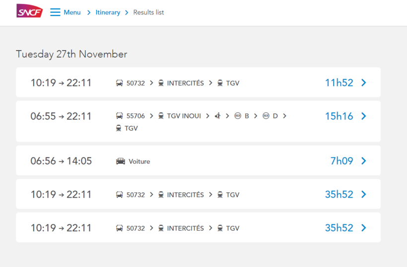 Когда я поняла, что на автобусе мне придется ехать почти 12 часов, я сразу начала искать информацию о поезде до Ниццы, и к моему удивлению, прямых рейсов между городами нет. Маршруты с одной пересадкой ходят всего несколько раз в неделю, уточняйте расписание заранее. Есть рейсы с пересадками в Марселе, такой путь займет от 11 часов в пути, а цена билета начинается от 147.00 евро. Я думаю, данный вариант абсолютно неактуален.