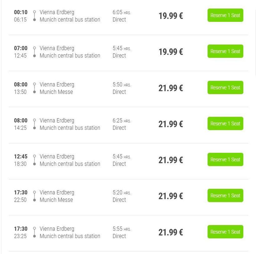 Прямые рейсы из Вены в Мюнхен предлагает только одна компания. Называется она Flixbus. Её автобусы легко отличить среди многих других благодаря характерной зелёной окраске: