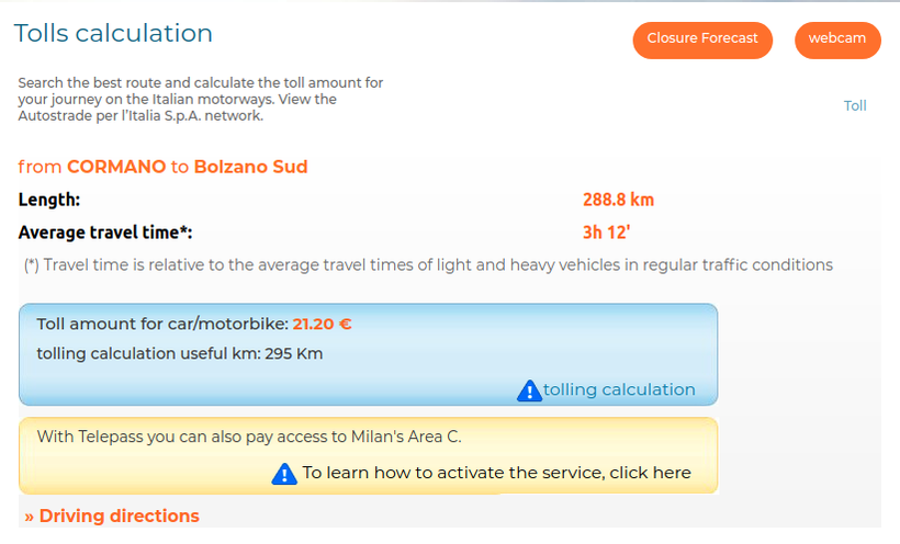 Прежде всего, предупрежу — по пути будут платные дороги. Платным будет участок после выезда из Милана и до Больцано: