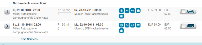 Ниже приведена информация о том, сколько часов вам потребуется, чтобы добраться от Милана до Мюнхена, а также приведена примерная стоимость проезда (средняя цена билета) на том или ином виде транспорта.
