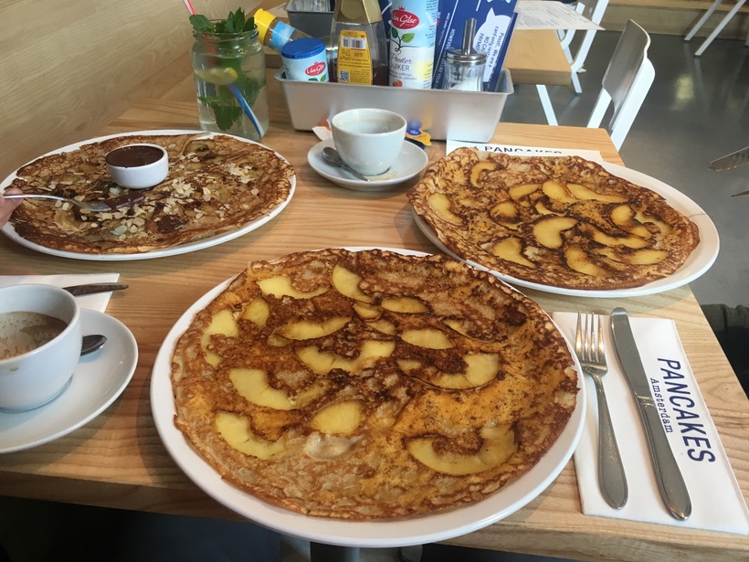 Везде бронировать, но оно того стоит. Рядом с домом Анны франк есть превосходная блинная с местными блинами с разными вкусами. Мы брали яблоко-сыр, бесподобно. Каждый блин - 10 евро. Он огромный.