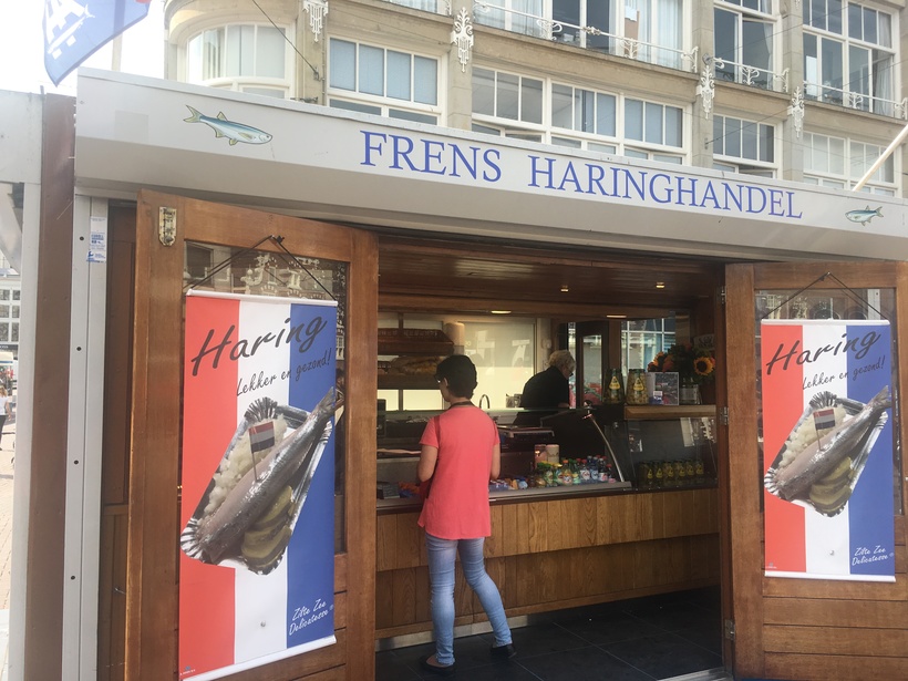 найдите любую из селедочных палаток. Скушайте селёдку в булке с огурцами и луком- безумно вкусно. Из напитков пиво . Так же есть отличный ресторан