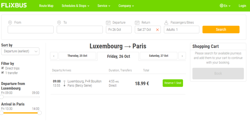 - Как видите, Flixbus предлагает более выгодную цену, всего за 19 евро и, как я уже сказала, автобус в пути всего 5 часов.