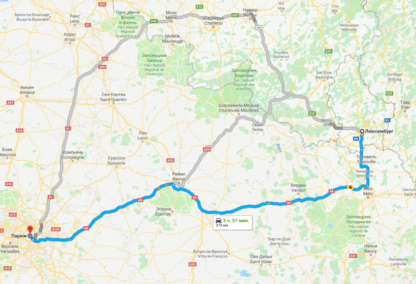 Еще один мой любимый способ передвижения по Европе! Мне кажется, если вы путешествуете большой компанией, то это самый лучший выбор. Итак, расстояние между Люксембургом и Парижем 357 км, на машине проедете примерно за три с половиной часа.