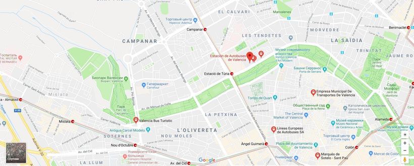 Прибывают же автобусы на автовокзал Валенсии, расположенный здесь: