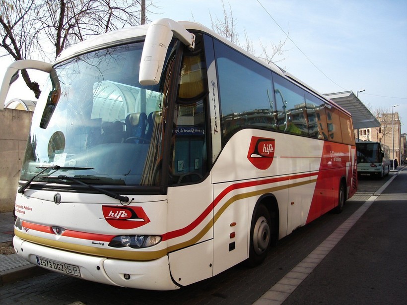 Автобусное сообщение между Салоу и Валенсией имеется. Обеспечивается оно автобусами компании Hife. Автобусы этой фирмы выглядят вот так: