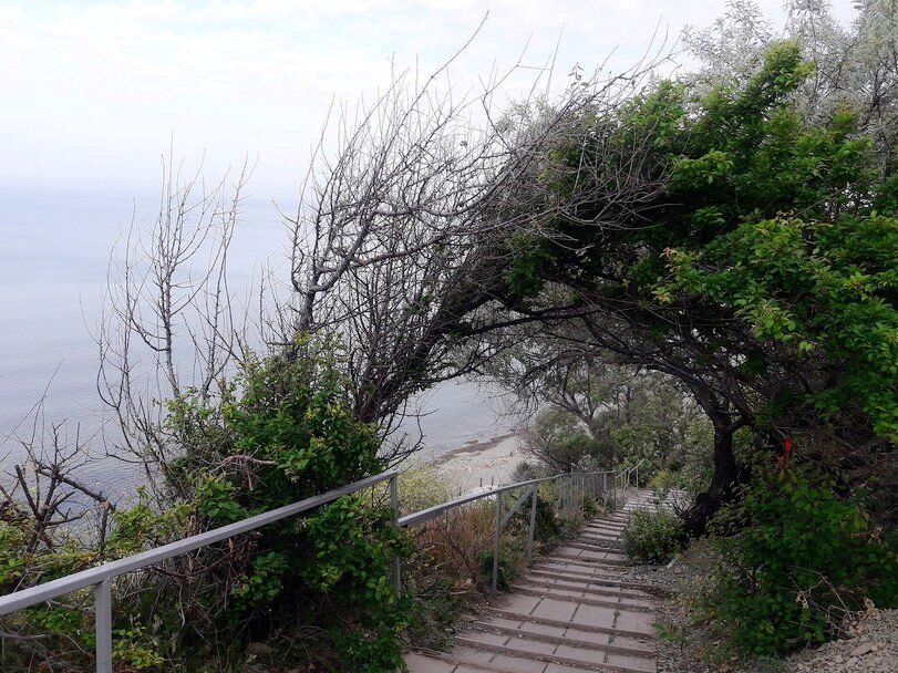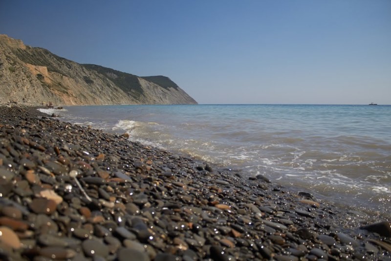 На галечном пляже вода намного чище, народу поменьше, но гальку не все любят, а после шторма здесь очень холодная вода.