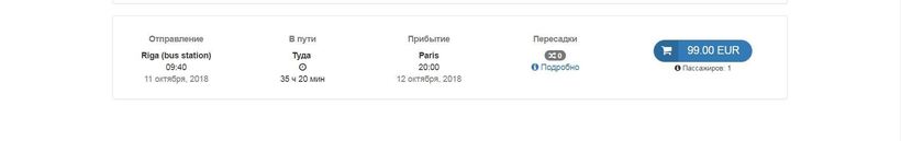 И это всё не учитывая расходов на бензин и ночёвку (потому как за сутки доехать не получится). В общем, крайне не рекомендую ехать на машине. Если так уж нужны свои 4 колеса, то лучше арендовать автомобиль по месту через один из вот таких сервисов. Выйдет уж точно не дороже, чем все путевые расходы от Риги до Парижа.