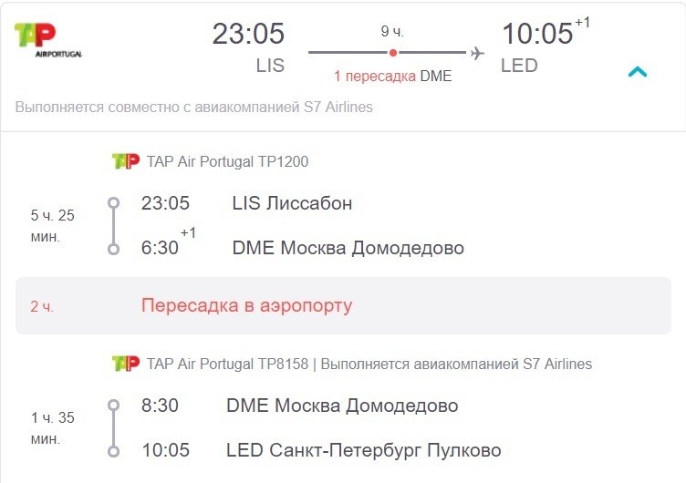Прямого воздушного сообщения между Лиссабоном и Санкт-Петербургом нет. До Северной столицы РФ можно добраться только с пересадкой. Ее удобнее всего сделать в Москве. Дорога займет девять часов.