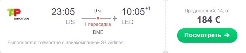 Рейсы выполняют компании: S7 Airlines и TAP Air Portugal.