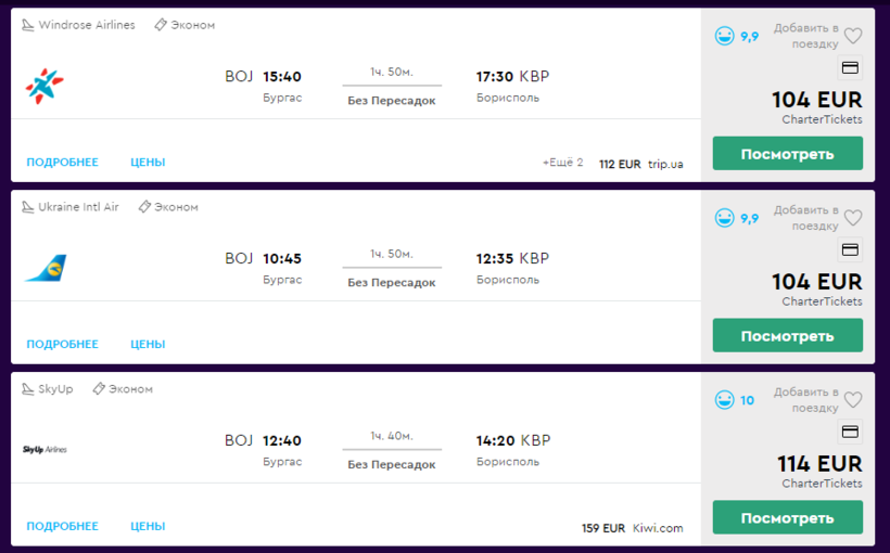 Но они доступны только в летний период. Самолеты вылетают из международного аэропорта Бургас (Сарафово), а через 2 часа садятся в аэропорту Борисполь.