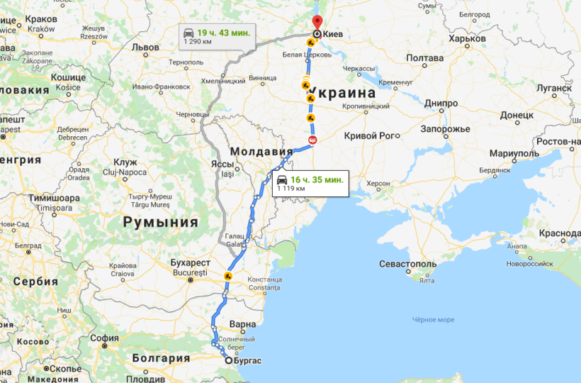 Для того, чтобы добраться в Киев, нужно преодолеть 1100 км. Время в пути будет зависеть от скорости прохождения границ и количества остановок, которые вы сделаете. В Болгарии дороги платные, нужно приобрести электронную виньетку. Она стоит от 10 левов (5 евро) и продается на заправках, в точках продаж и онлайн. Румынская электронная виньетка, без которой проезд по трассам страны запрещен, стоит от 3 евро и продается в магазинах, на заправках, на почте и в интернете. В Республике Молдова также придется приобрести виньетку. Ее цена — 4 евро, ее купить можно на таможне, в пунктах продаж или онлайн. И только Украина пока не ввела плату за проезд по своим дорогам.