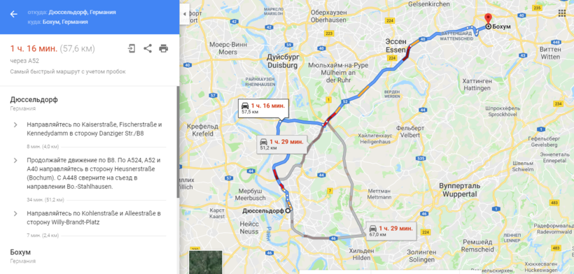Из Дюссельдорфа в Бохум на авто