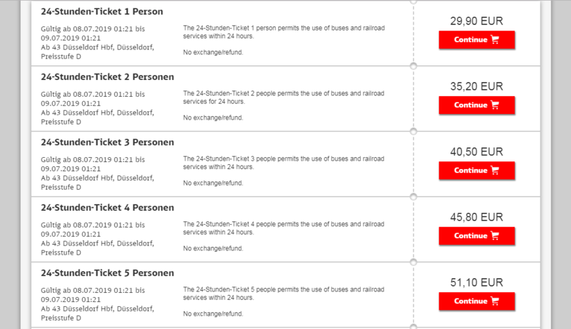 И обычные билеты на скоростные поезда, и суточные проездные можно приобрести на сайте Deutsche Bahn, в билетном терминале или у кассира на вокзале.