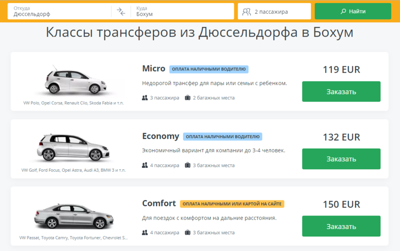 Из Дюссельдорфа в Бохум на такси