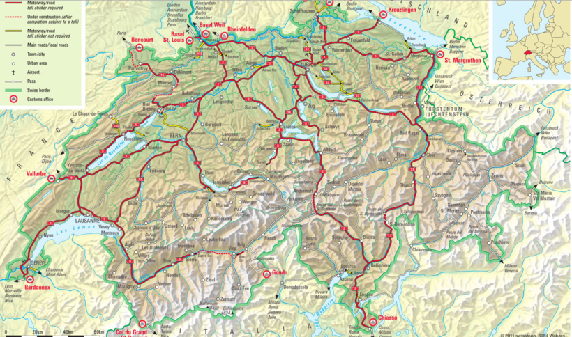 Карта платных дорог Швейцарии: