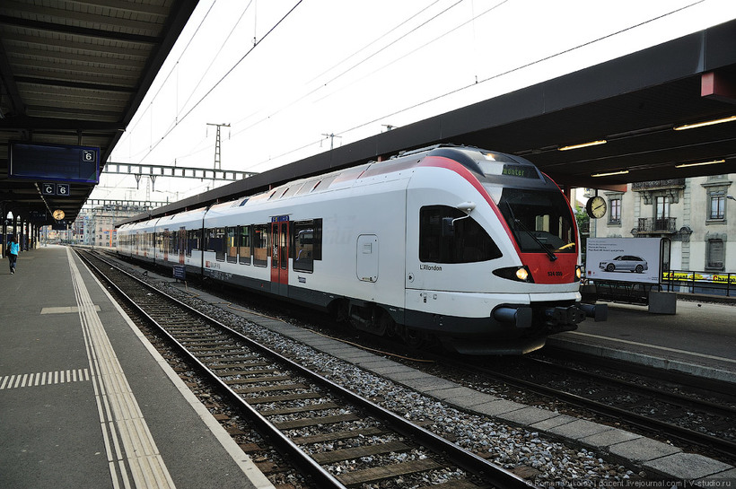 Каждый час идет поезд на Люцерн с пересадкой в Цуге. Отправляется поезд в 9 минут каждого часа (9:09, 10:09 итп), следовать поезд начинает с 4 пути в направлении Локарно или Лугано. Далее в Цуге пересадка и тоже с 4 пути нужно ехать до конечной в Люцерне. Время в пути – 58 минут.