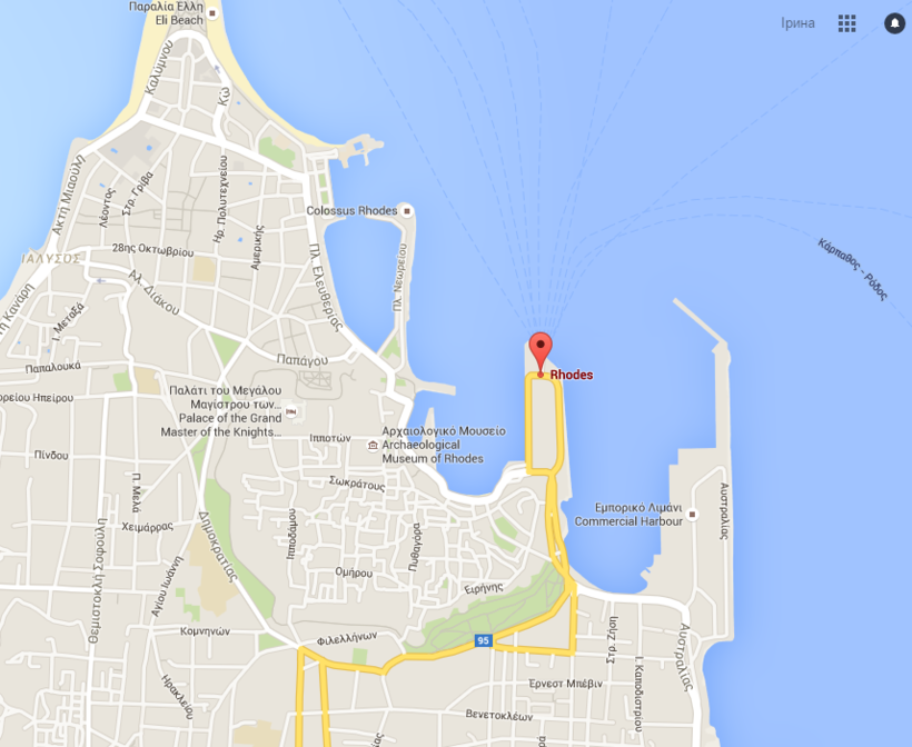 Паромный причал Родоса на карте: