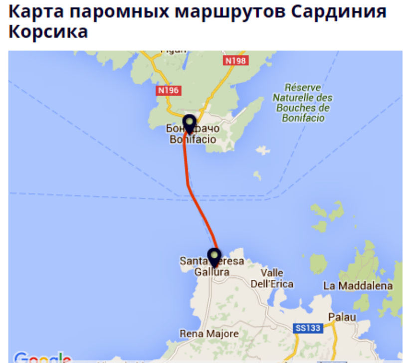 Сардиния — Корсика — маршрут на карте