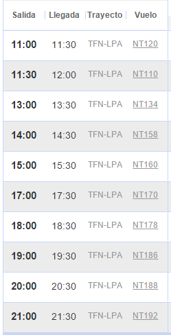 Большинство рейсов в Гран-Канарию вылетают из Tenerife Nortе. Начиная с 11 часов утра и до 21 вечера вылетает 10 рейсов в Гран -Канарию.
