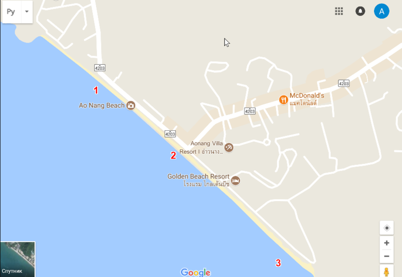 В итоге, под купание отведено 1/3 пляжа. Между точками 1 и 2 купаться нельзя. От Точки 2 до точки 3 купаться можно.
