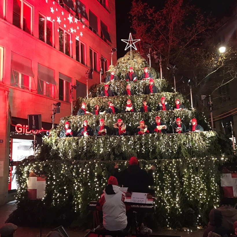 По вечерам город выглядел волшебно! Искусно украшенный, он блестел и переливался. Над Банкофштрассе распростерся звездный балдахин. Этот световой дисплей аборигены называют Люси. Оказавшись в Швейцарии в декабре нельзя не посетить рождественские ярмарки. Мне понравились:
