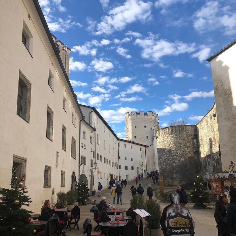 Для настоящей сказки не хватало снега. Он в Зальцбурге бывает, но, в последние годы, все реже. Как говорят австрийцы, globale Erwärmung, глобальное потепление. Об отсутствии белой пелерины мгновенно забываешь на рождественских рынках. Самый красивый – у подножия крепости Хоэнзальцбург. Восхитительный аромат пунша, жареных каштанов, печеных яблок сводит с ума! На прилавках елочные украшения, игрушки, уютные изделия из трикотажа.