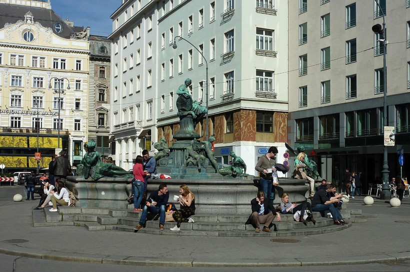 В марте в столице Австрии очень и очень чисто (аж до неприличия); есть более-менее зеленые газончики, кое-где цветы и аккуратные кустики. Листья на деревьях только-только начинают появляться. Вена пока еще серенькая, но в воздухе витает весна! Время от времени дуют сильные пронизывающие неприятные ветра, которые особенно ощущаются на открытых пространствах. Но, если светило солнышко, всех всё устраивало; к тому же, нередко ветра и вовсе стихали к вечеру.