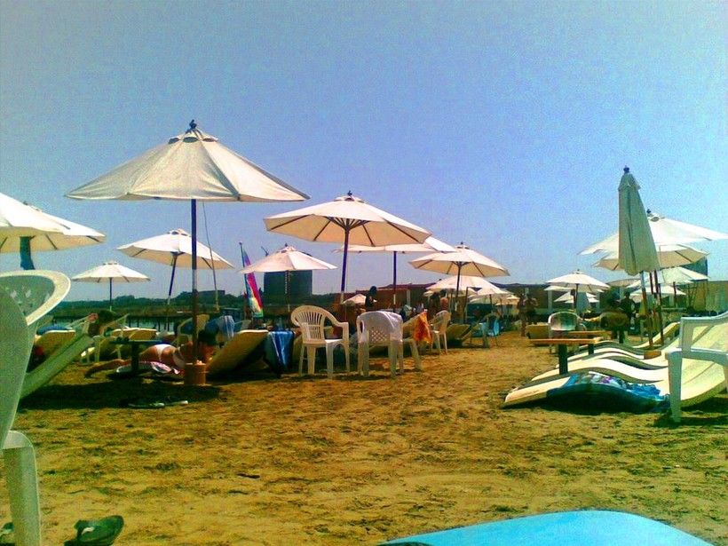 Там установлены зонтики, лежаки, есть кафешка. Каспийское море в июне прекрасное по температуре - 24-25 градусов, что для такое жары то, что надо. Песок чистый, без мусора, людей много, особенно на выходных.