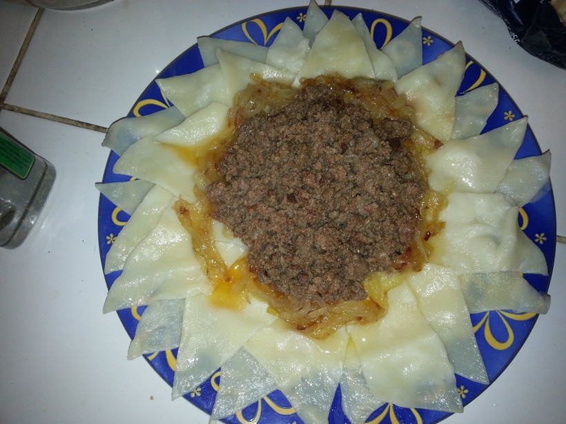 И ещё очень вкусное блюдо - хинкали азербайджанские, внесезонное правда, но умолчать о нем не могу. Разновидностей их очень много. Их могут подать как суп или есть такие отварные ромбы из теста, а на верх кладут жареный фарш, подают со сметаной. Тесто такое же как пельменное.