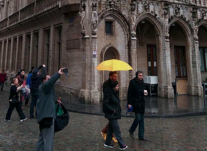 На самом деле погодка оказалась более приятной: на конец апреля-месяца воздух прогрелся аж до +28, светило приятное солнышко, туч не видел вовсе. Зонт не понадобился, оказывается, брюссельский апрель — самый-самый сухой период в году. По итогу, осмотры достопримечательностей провел с пальто, перекинутым через руку.