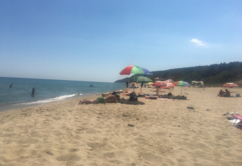 Пляжи конца весны в Бургасе нельзя назвать абсолютно пустыми, к полудню заполняются отдыхающими, предпочитающими получить легкий майский загар. Прибрежные воды при этом пусты — купающихся ноль.